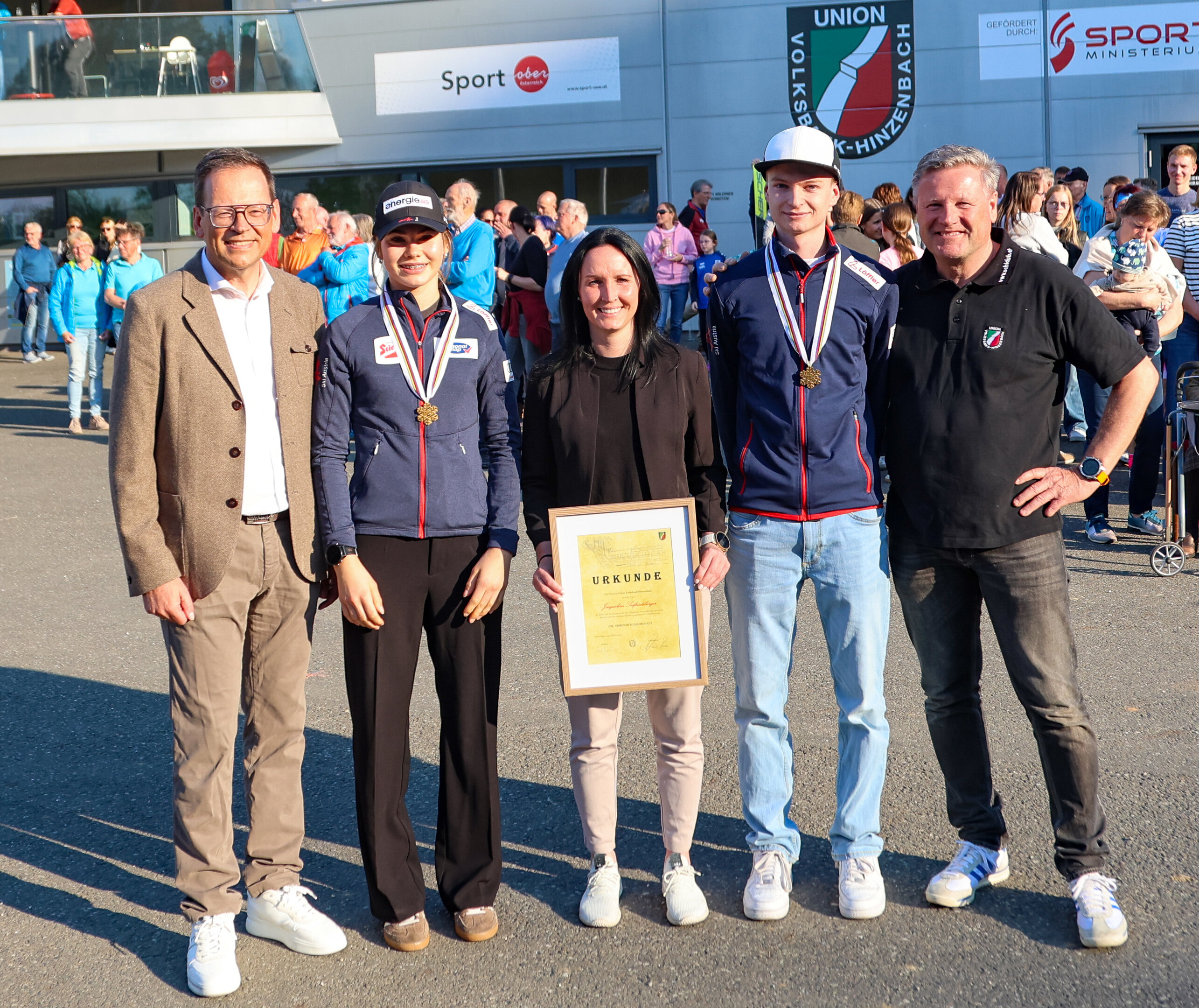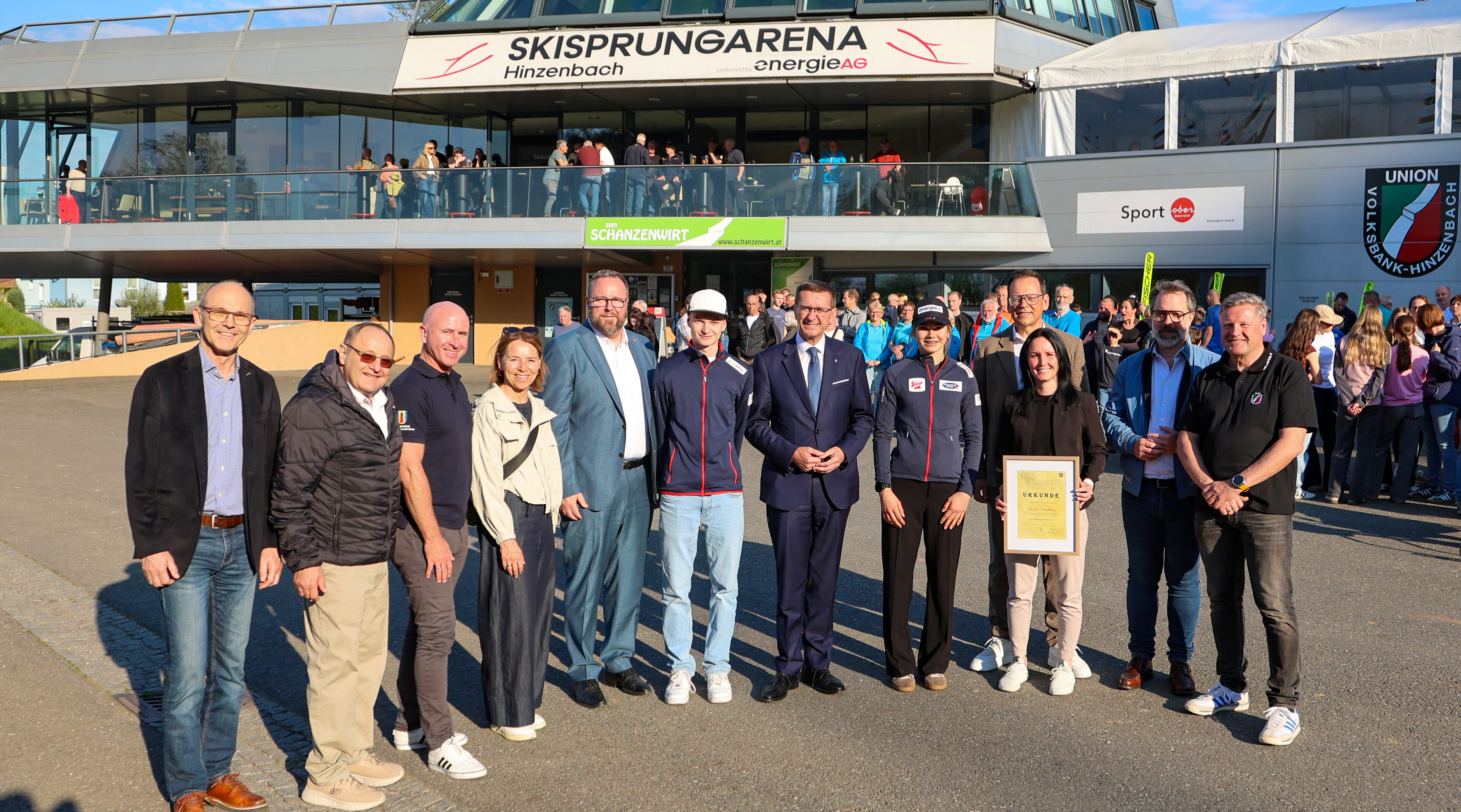 Ebenfalls hochleben ließ der UVB Hinzebach Oberösterreichs erfolgreichste Skispringerin Jacqueline Seifriedsberger, die im September 2025 ihren Rücktritt bekannt hab. Die Athletin vom SC Waldzell hat während ihrer Laufbahn unzählige Male in Hinzenbach trainiert und mit einem zweiten und einem dritten Platz zählt Hinzenbach auch zu ihren erfolgreichsten Weltcupstationen. UVB Hinzenbach-Präsident Bernhard Zauner überreichte Seifriedsberger in Würdigung ihre Leistungen die Ehrenmitgliedschafts-Urkunde des UVB Hinzenbach.