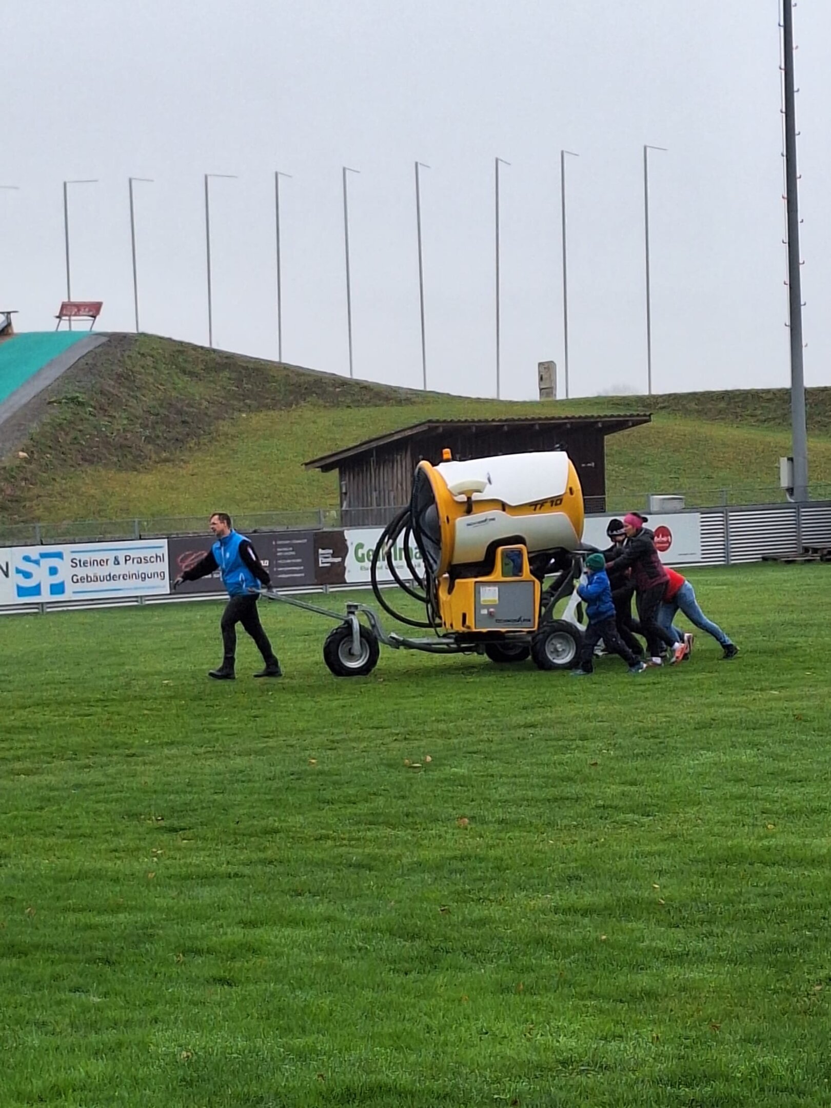 Zauners Dank gilt ganz besonders jetzt auch wieder den vielen freiwilligen Helfern, die zuletzt beim Einwintern der Schanze geholfen haben. 35 Ehrenamtliche haben einen Tag lang vollen Einsatz gezeigt, das Schneehaltenetz ausgelegt, die Schneekanonen einsatzbereit und so die Schanze fit für den Winter gemacht.