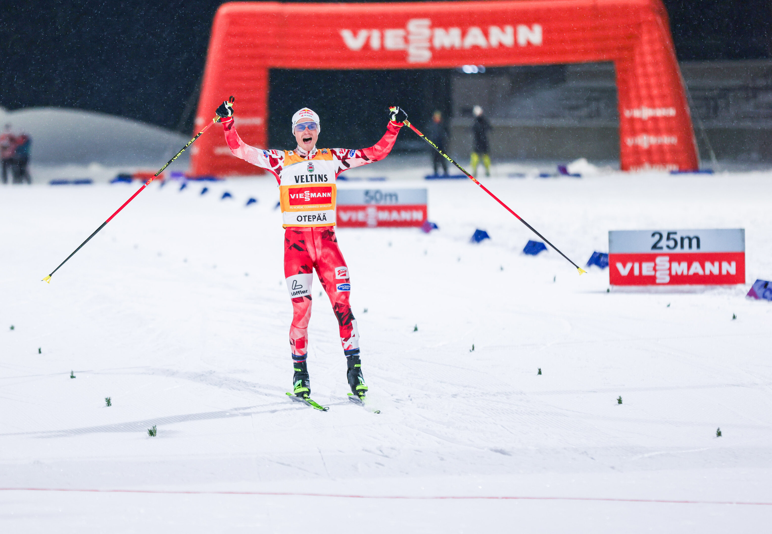 Johannes Lamparter: (1.) „Die Freude über meinen Sieg ist riesig. Der Sprung war schon richtig gut, ich hatte wirklich schlechte Verhältnisse. Das Compact-Format hat mir heute ein bisschen in die karten gespielt, die Abstände waren sogar minimal größer als sonst. Im Rennen habe ich probiert, von Anfang an Tempo zu machen und dranzubleiben. Die harte Arbeit hat sich dann wirklich gelohnt. Auf gestern hin tut es richtig gut, heute wieder einen Sieg zu feiern. Ich genieße im Moment jedes Rennen und freue mich schon auf die nächsten Stationen in Oberhof und Seefeld.“