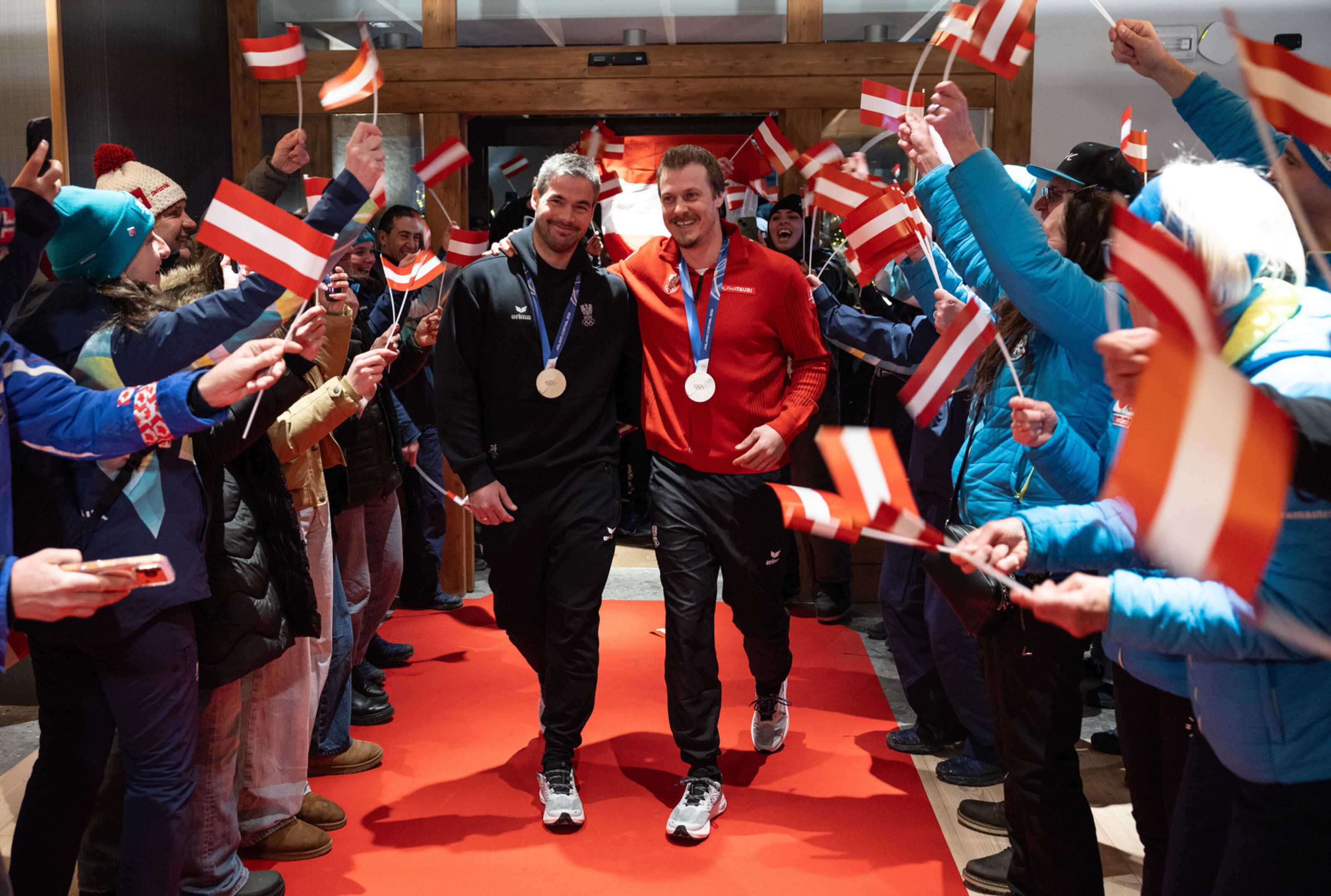 Im Slalom folgte dann die große Aufholjagd und Teamkollege Manuel Feller zeigte mit der zweitbesten Laufzeit auf. Feller/Kriechmayr machten Platz um Platz gut, am Ende sicherte sich das österreichische Top-Duo 0,99 Sekunden hinter den Schweizern Franjo von Allmen und Tanguy Nef tatsächlich noch die Silbermedaille. Gleichauf mit den beiden Österreichern jubelten auch Marco Odermatt und Loic Meillard (SUI) über Silber.