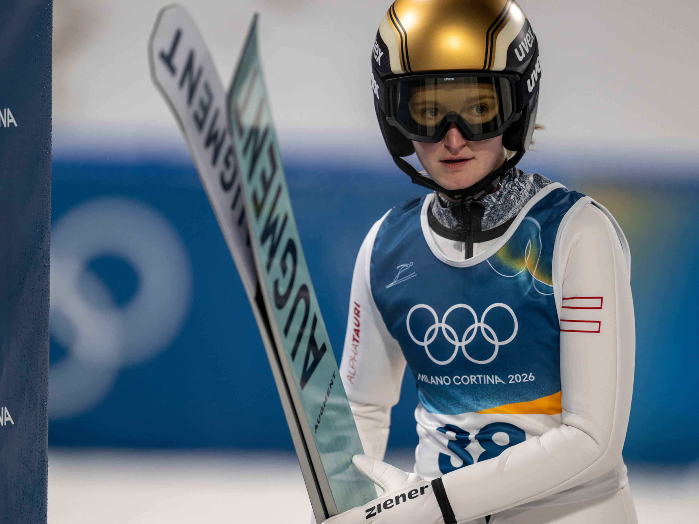 Val di Fiemme (I), 07.02.2026 - Oberösterreichs aktuell beste Skispringerin Julia Mühlbacher schafft es bei ihrem ersten Olympiaauftritt nicht über Platz 22 hinaus.