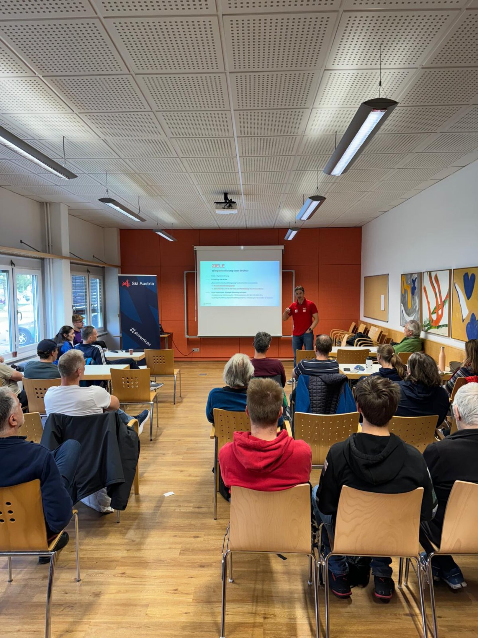 Inhaltlich liefen die drei Veranstaltungen alle nach demselben Schema ab. Der Begrüßung und einleitenden Worten von ÖSV Trainerreferent Gert Ehn folgte ein Vortrag des ÖSV Nachwuchsleiters, Harald Kirchmair, in dem auf strukturelle, inhaltliche und strategische Änderungen im Nachwuchsbereich eingegangen und das Nachwuchskonzept „Projekt 2030“ vorgestellt wurde. Im Anschluss ging Manuel Annewanter, Koordinator Athletiktraining ÖSV Nachwuchs, auf grundlegende Aspekte des Athletiktrainings ein und verdeutlichte den Teilnehmer:innen die enorme Bedeutung dieses Bereiches im alpinen Skirennlauf.